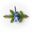 Delft Blue windmill on a blue ribbon, an original ornament for the Christmas tree.