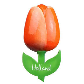 Miniature Wooden Tulip Magnets with white Holland print. A great addition to every refrigerator and memo-board.