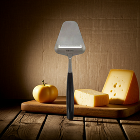 Meet the Cheese Slicer Milano+, perfect for semi-hard and aged cheeses. Enjoy thin slices without sticking, thanks to the non-stick BSF™ treatment and serrated edge. This stainless steel cheese slicer is dishwasher safe, making cleanup effortless.