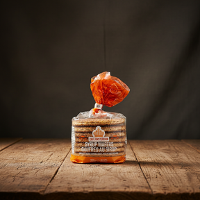 Cafe Amsterdam Stroopwafels are authentic Dutch syrup waffles made from two thin, cinnamon-spiced layers held together by a gooey caramel-syrup filling. These treats are baked using traditional Dutch methods and are intended to recreate the "little gift" experience found in Amsterdam's cafe culture.