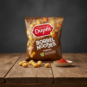 Duyvis Borrelnootjes Poesta are delicious peanuts with a crunchy coating and a savory flavour. With herbs such as paprika powder, the Duyvis Borrelnootjes Poesta peanuts give a unique taste sensation! So get these delicious savory nuts in your home quickly. Without artificial colours.